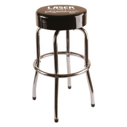 • Fix kialakítású szerelőszék (bárszék) puha szivacsos ülőrésszel, bőr huzattal, Laser Tools Racing logóval.
